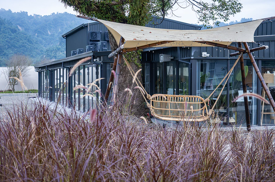 目前整個《波希謐境》是圍繞著中央的「謐食餐廳」而建立,這幢黑色大型非常有質感的餐廳內部,待會我們會詳細介紹。「謐食餐廳」外頭還有竹製鞦韆,坐在這裡迎著涼風徐徐,好不愜意。
