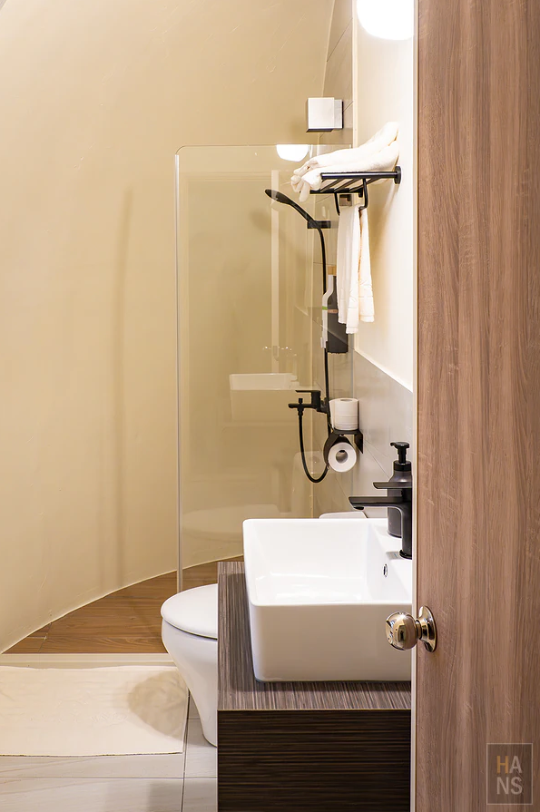 「波波屋」裡備有現代化的浴廁(沐浴時水量真的很大,完全不覺得是在露營),《波希謐境》使用的是 100% 零碳排的 O’right 歐萊德洗沐系列,將環保概念延伸到每個細節。