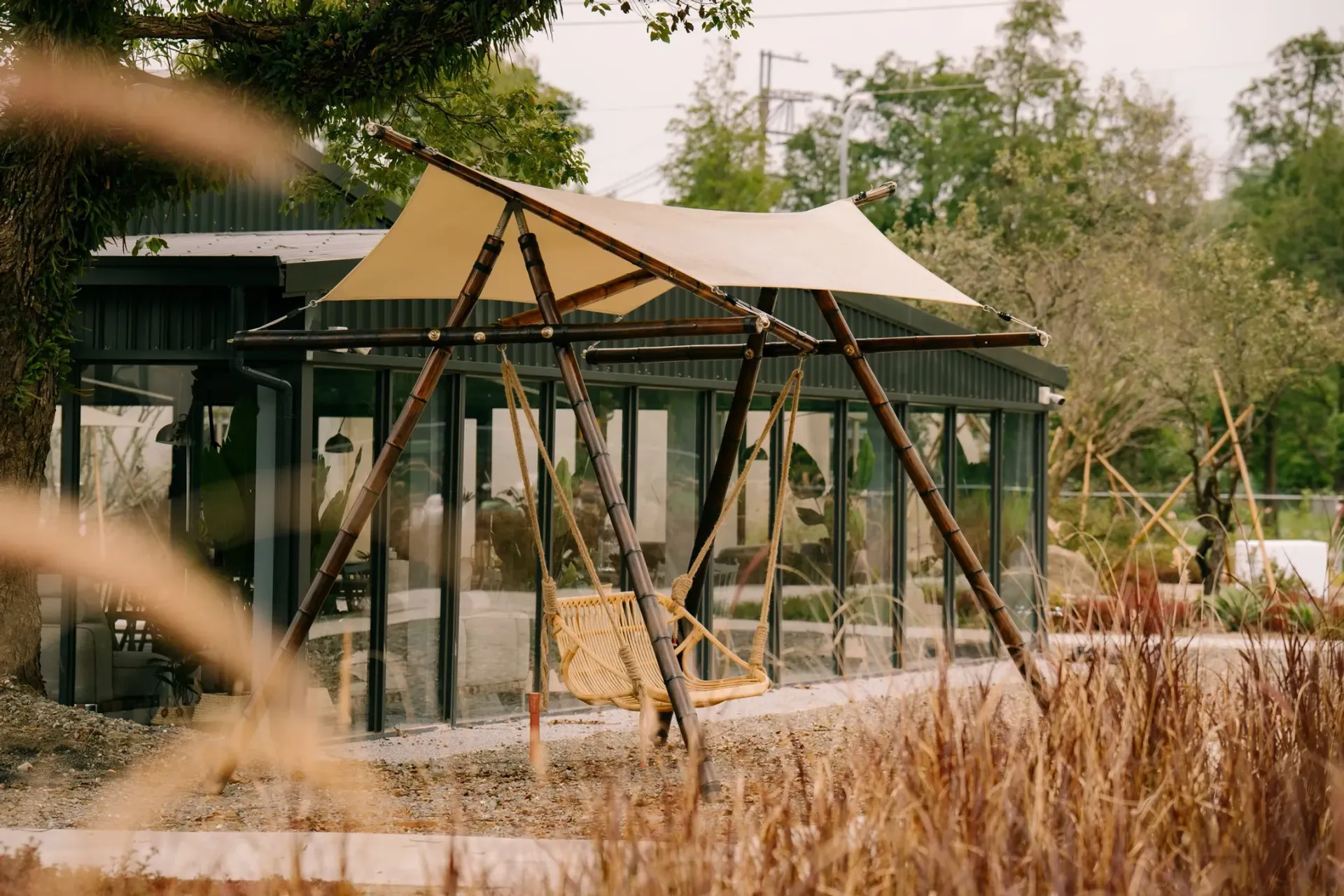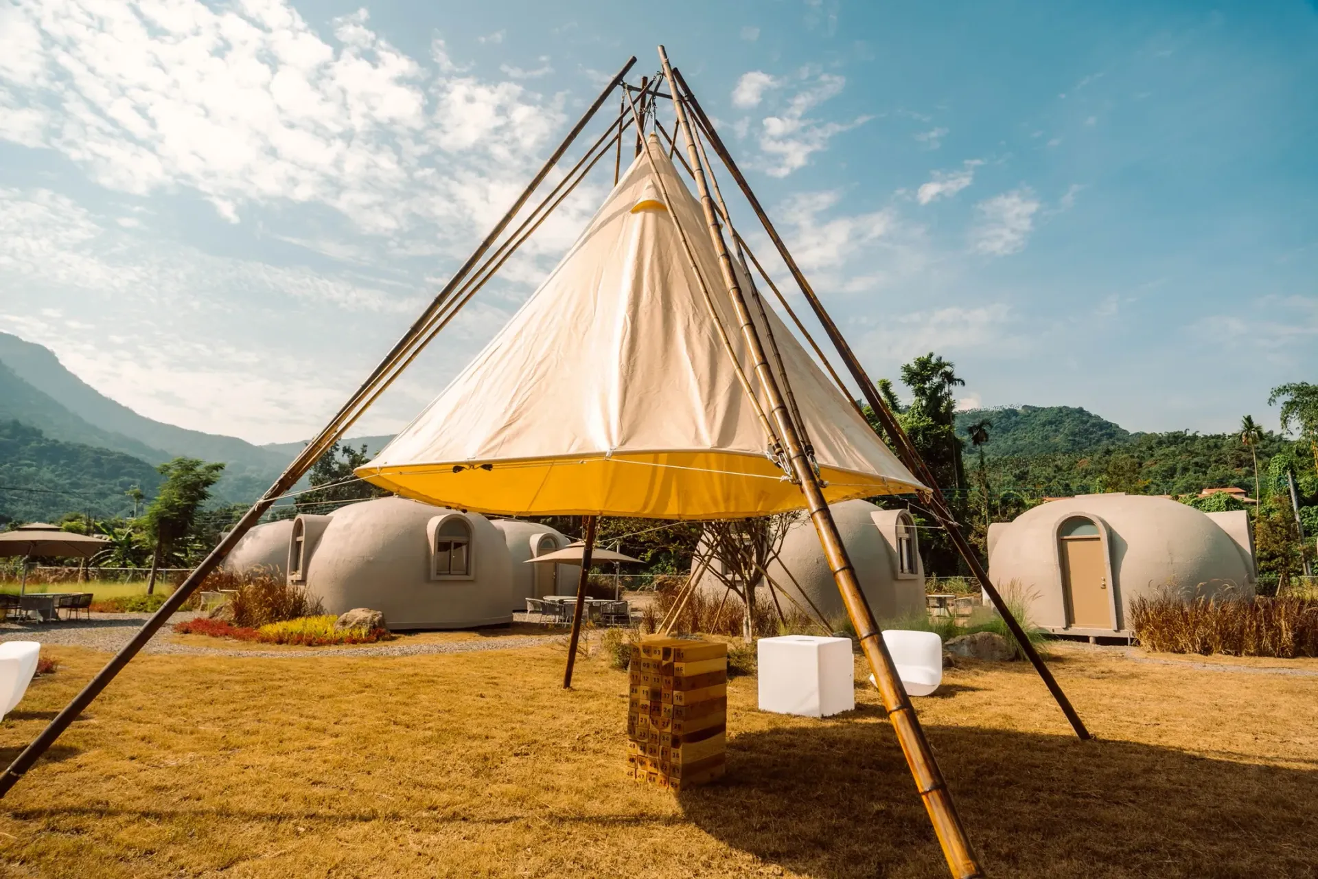 採用台灣孟宗竹,手工打造「四角星鞦韆」、「燕尾遙遙」、「竹涼帳」、「戶外大型疊疊樂」等設施⛺